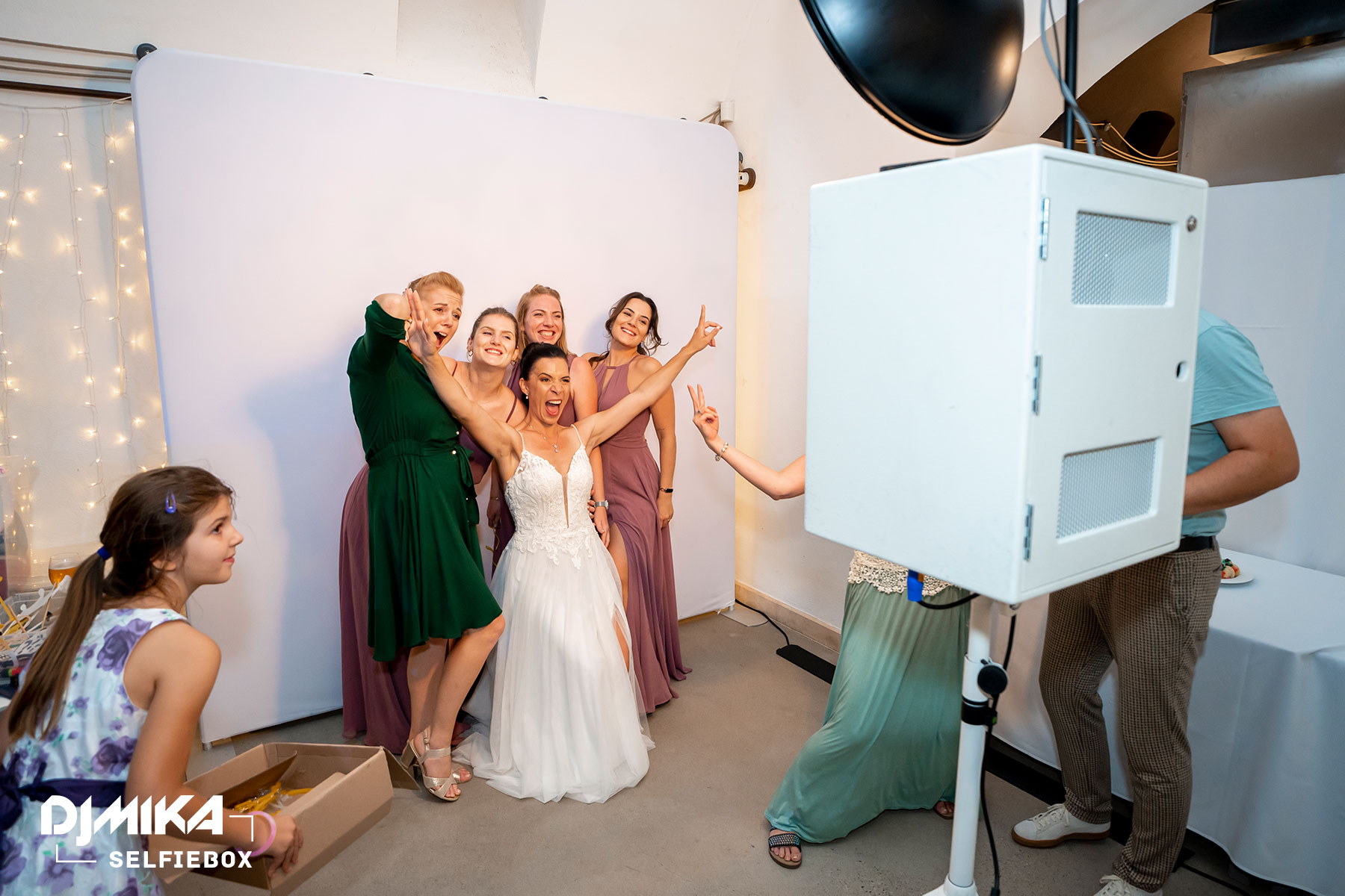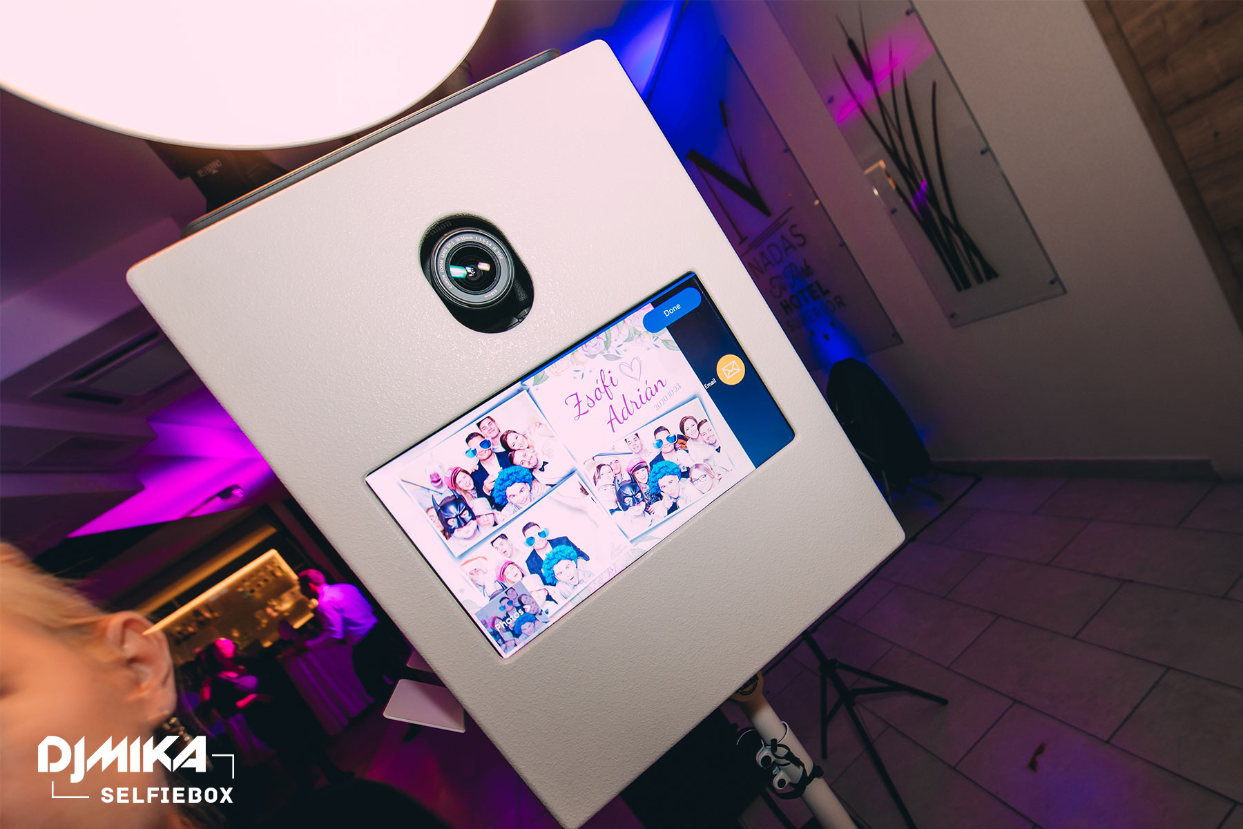 A Selfiebox egy érintőképernyős fotóautomata, kisméretű ipari fotónyomtatóval és egy profi kamerával. Ha beálltok a szelfigép elé élőképen látjátok magatokat, miközben a gép visszaszámol. Az előre beállított fotósablon szerint egy vagy akár több fotó is kerülhet a sablonra. A kész fotókat a gép a sablon szerinti keretbe, kollázsba szerkeszti, amit a helyszínen ki is nyomtatunk nektek, amennyi darabszámban szeretnétek. Az asszisztensek mindenben segítenek nektek.