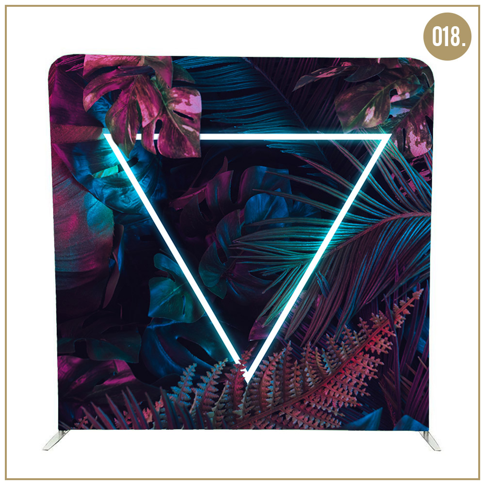 Az alábbi hátterek cca. 2,5*2,5 méter (szélesség, magasság) méretű, két oldalasan nyomtatott hurkolt poliészter belső, rejtett alumínium csővázon. Ezek valamelyike elé fognak beállni a vendégeitek. Érdemes a szelfigép által nyomtatott papírkép grafikájához, valamint a helyszínhez (főként dekorációhoz) passzoló hátteret választani.